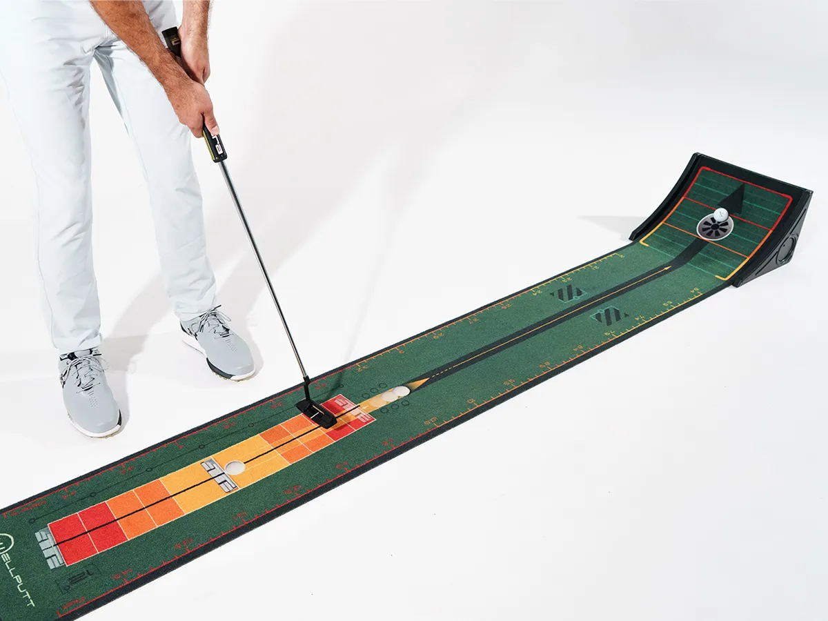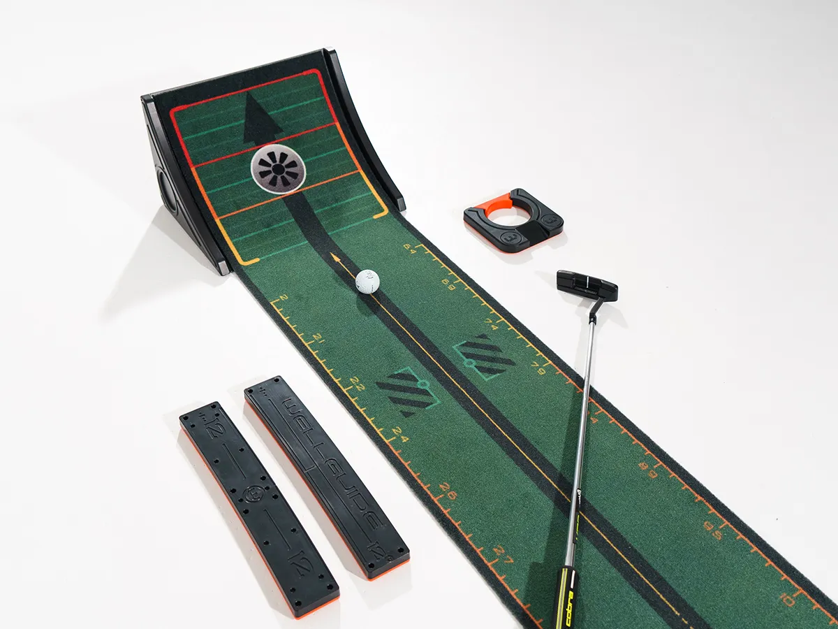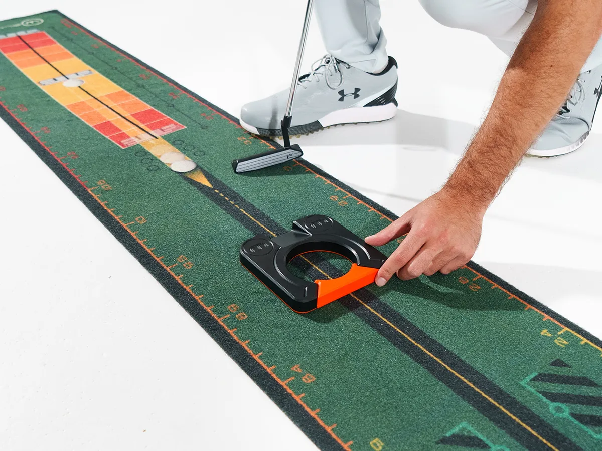 The convenient ball return ramp lets you sharpen your stroke through consistent repetition and extends your training for long putts up to 15 feet. Paired with the compact 8-foot mat, this innovative setup maximizes your practice potential in small spaces giving you the feel of being on the green.