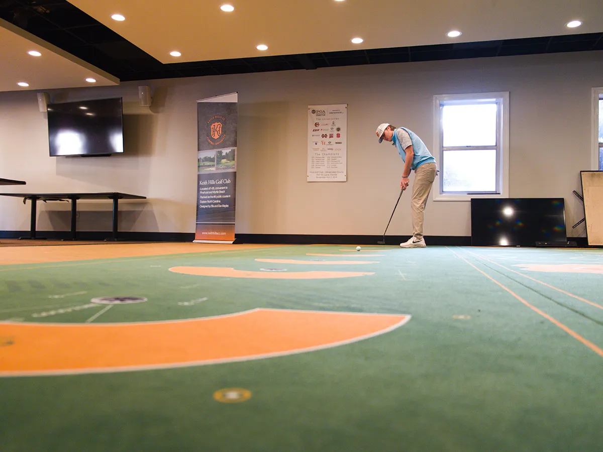 Nos surfaces de putting sur mesure sont conçues pour renforcer la performance des programmes de golf universitaires. Créez un sentiment d'appartenance et boostez le développement des compétences avec un tapis entièrement personnalisé qui soutient les athlètes à tous les niveaux.
